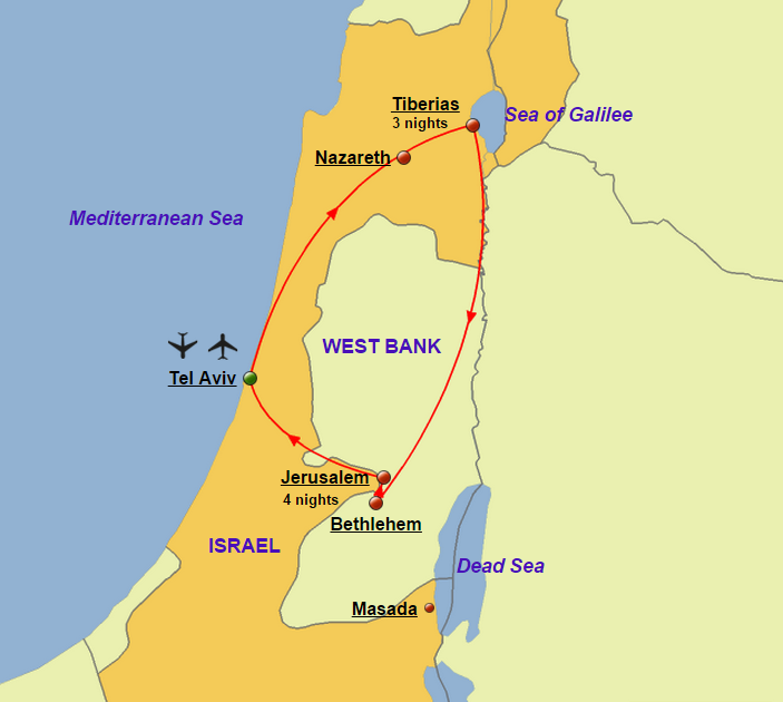 Tel Aviv, Tiberias, Nazareth, Cana, Sea of Galilee,