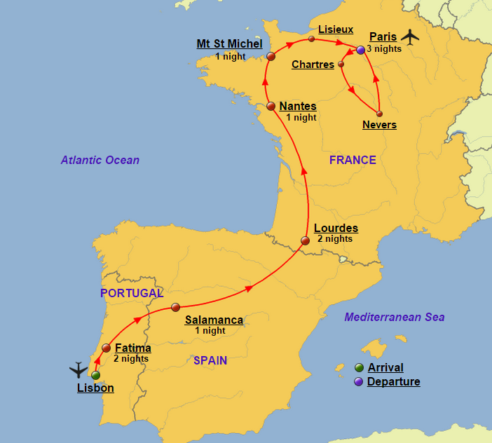 Lourdes, Paris, Lisieux, Charters, Mt.St.Michelle